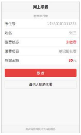 网上缴费提供两种方式,一种方式是使用自己的微信号进行支付,另一种方式可请他人帮助代缴。